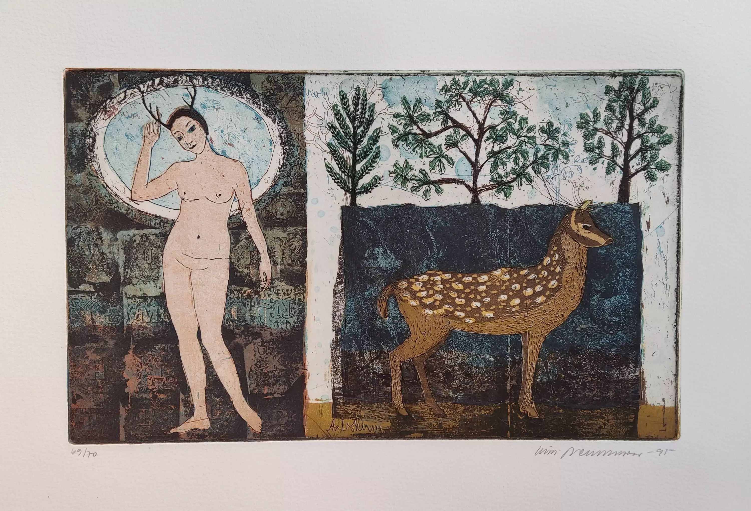 Teoksen nimi: Muotokuva axishirven kanssa