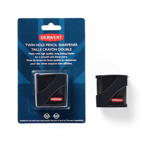 Derwent Dual Tip on kaksireikäinen laadukas säiliöteroitin. Teroitusaukkojen koot 11,5 mm ja 8,25 mm. Korkealaatuiset kestävät hiiliterästerät, jotka luovat kynään tasaisen ja terävän... Lue lisää