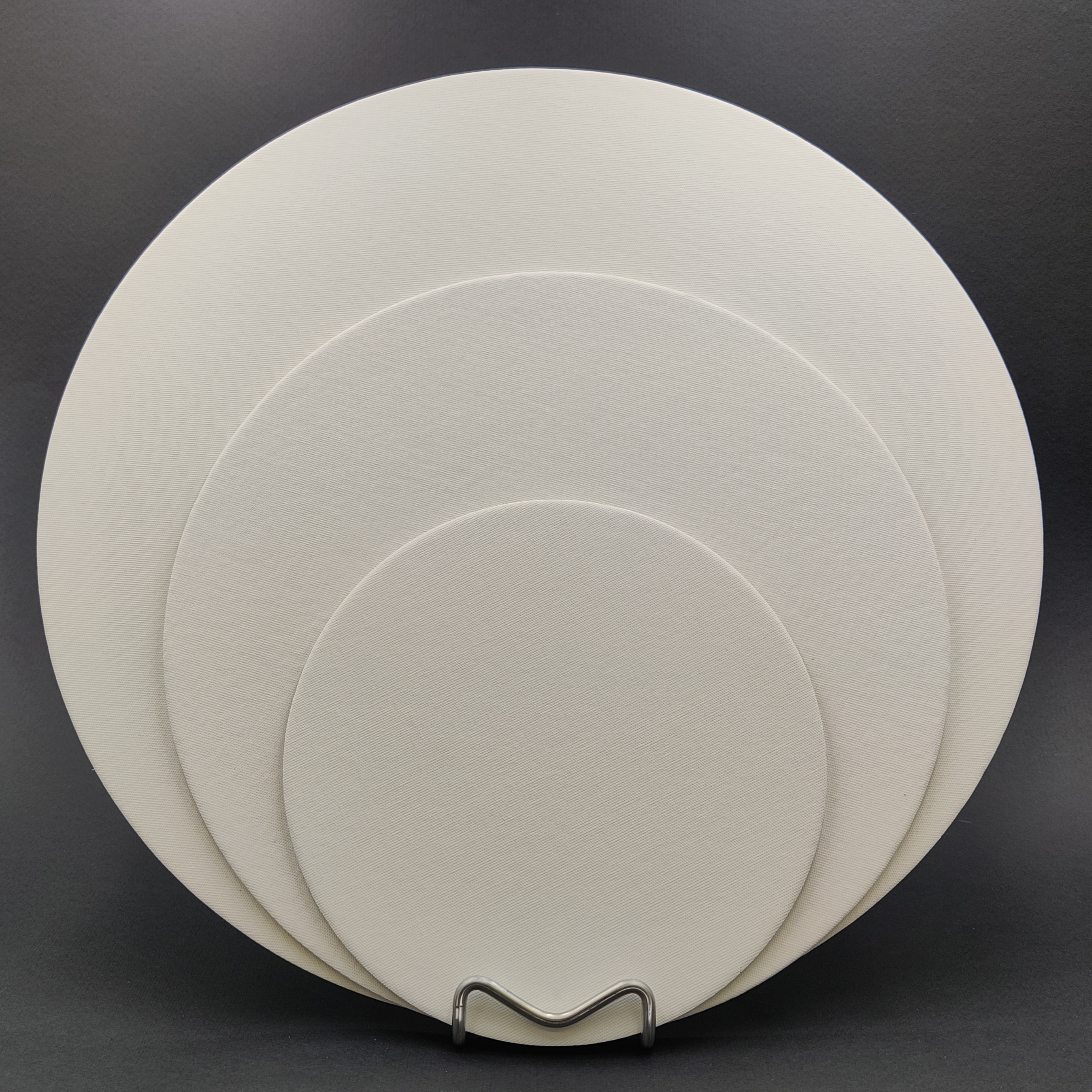 Pyöreä kangaspahvipohja, paksuus 3mm. Valittavana koot 20cm, 30cm ja 40cm. Heti maalattavissa! Maalauspohjan kangas on valmiiksi pohjustettu.
